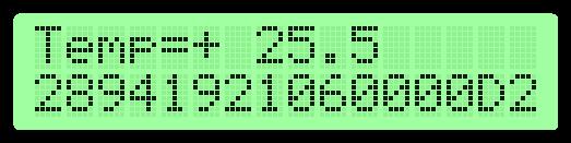 It shows the temperature on the first row, and on the second, the unique serial number of the sensor in hexadecimals – you need to know the ID of your sensors for the following example. The second row is also used to display the error messages.